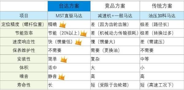 品質提升:直驅帶動負載,無背隙、精度條件佳,準確控制熔膠量